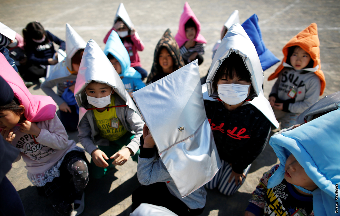 В начальной школе в Токио прошли ежегодные учения по основам безопасности во время землетрясения в преддверии шестой годовщины со дня трагедии в северо-восточной части страны. 11 марта 2011 года в Японии произошло одно из самых сильных в истории страны землетрясений, в котором погибли 18 тысяч человек и которое привело к аварии на АЭС "Фукусима".