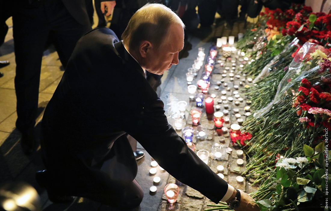 Президент России Владимир Путин возложил цветы у станции метро "Технологический институт" в память о погибших