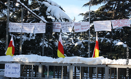 Акция оппозиции, проходящая в Цхинвали.