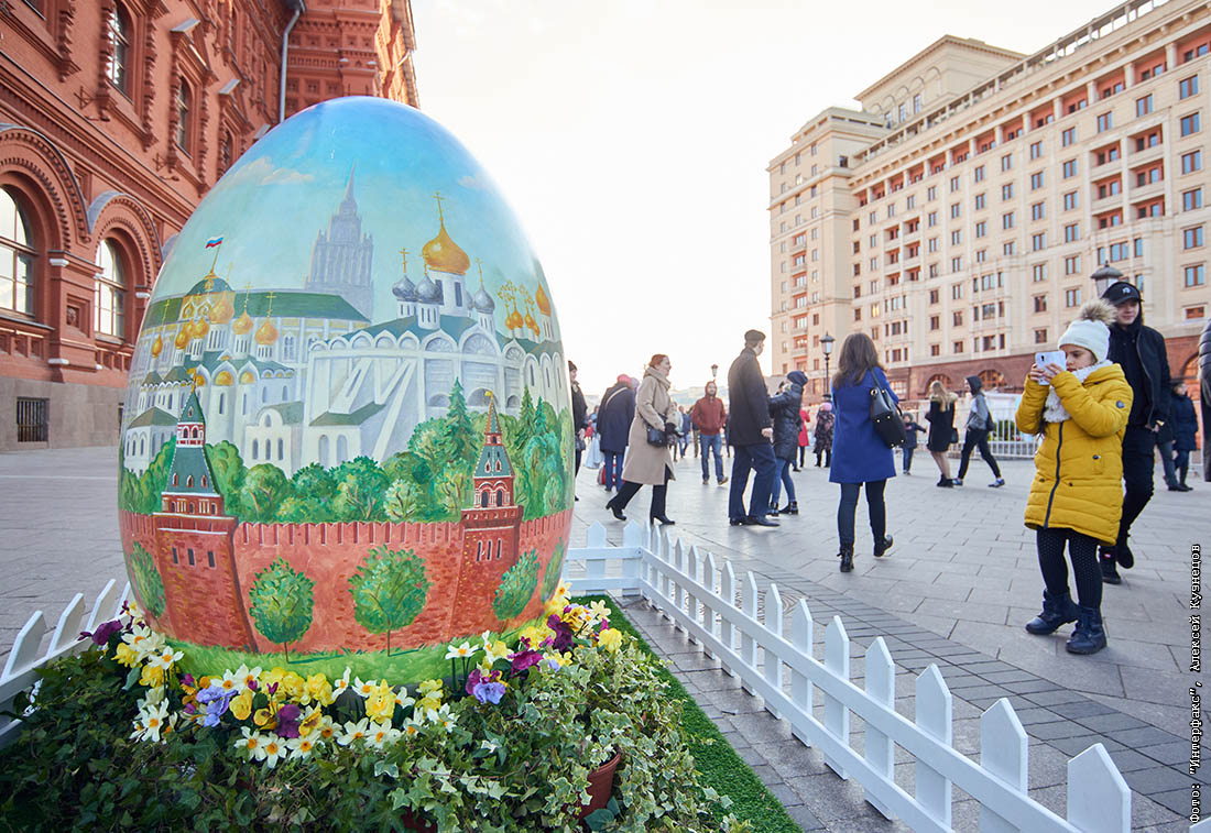 Яйца поменьше можно будет встретить на пути от Манежной площади к площади Революции, на улицах Никольской, Арбат, Кузнецкий Мост, Рождественке и в Камергерском переулке