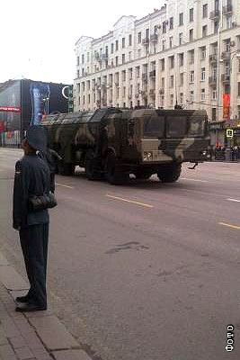 Примерно в 10:50 колонна военной техники начала движение по Тверской улице. Когда мимо мэрии проезжала группа, состоящая из нескольких "Искандеров", одна из машин остановилась, выехала из строя и включила аварийные сигналы. Остальная колонна продолжила движение для прохождения по Красной площади
