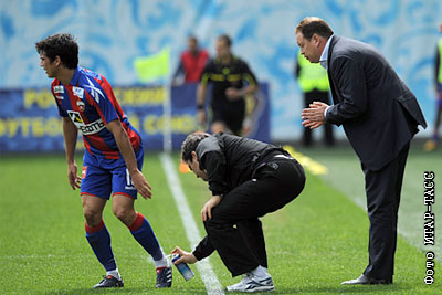 Армеец Марк Гонсалес (слева) и главный тренер ЦСКА Леонид Слуцкий (справа) в матче чемпионата России по футболу: ЦСКА (Москва) - "Терек" (Грозный) - 4:1