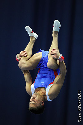 Спортсмен Антон Голоцуцков на соревнованиях Кубка мира по спортивной гимнастике в СК "Олимпийский"