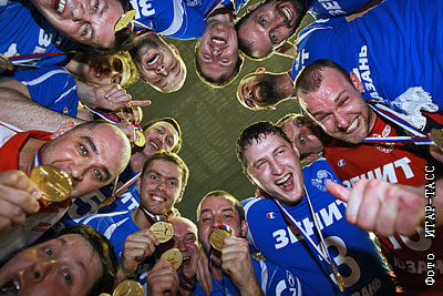 Игроки "Зенита" после победы в четвертом финальном матче чемпионата России по волейболу: "Локомотив-Белогорье" (Белгород) - "Зенит-Казань " (Казань) - 0:3
