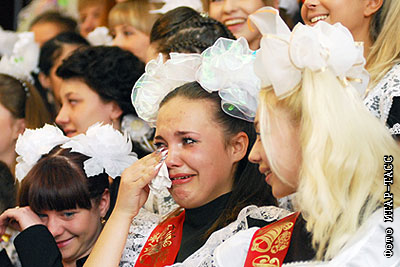 Выпускницы в День последнего звонка в одной из школ Минусинска