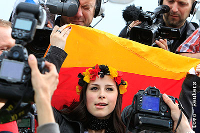 Певица Лена Майер-Ландрут из Германии после победы на конкурсе "Евровидение" вернулась домой