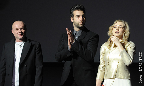 Актеры Андрей Смоляков, Иван Ургант и Оксана Акиньшина (слева направо) на премьере фильма "Высоцкий. Спасибо, что живой" в кинотеатре "Октябрь".