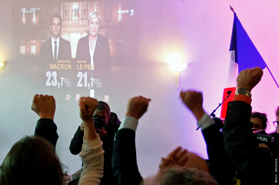 23 апреля во Франции прошел первый тур президентских выборов. В общей сложности в борьбе за пост принимали участие 11 кандидатов. Во второй тур голосования, который состоится 7 мая, прошли лидер ультраправого "Национального фронта" Марин Ле Пен и кандидат в президенты Франции от движения "Вперед" Эммануэль Макрон.