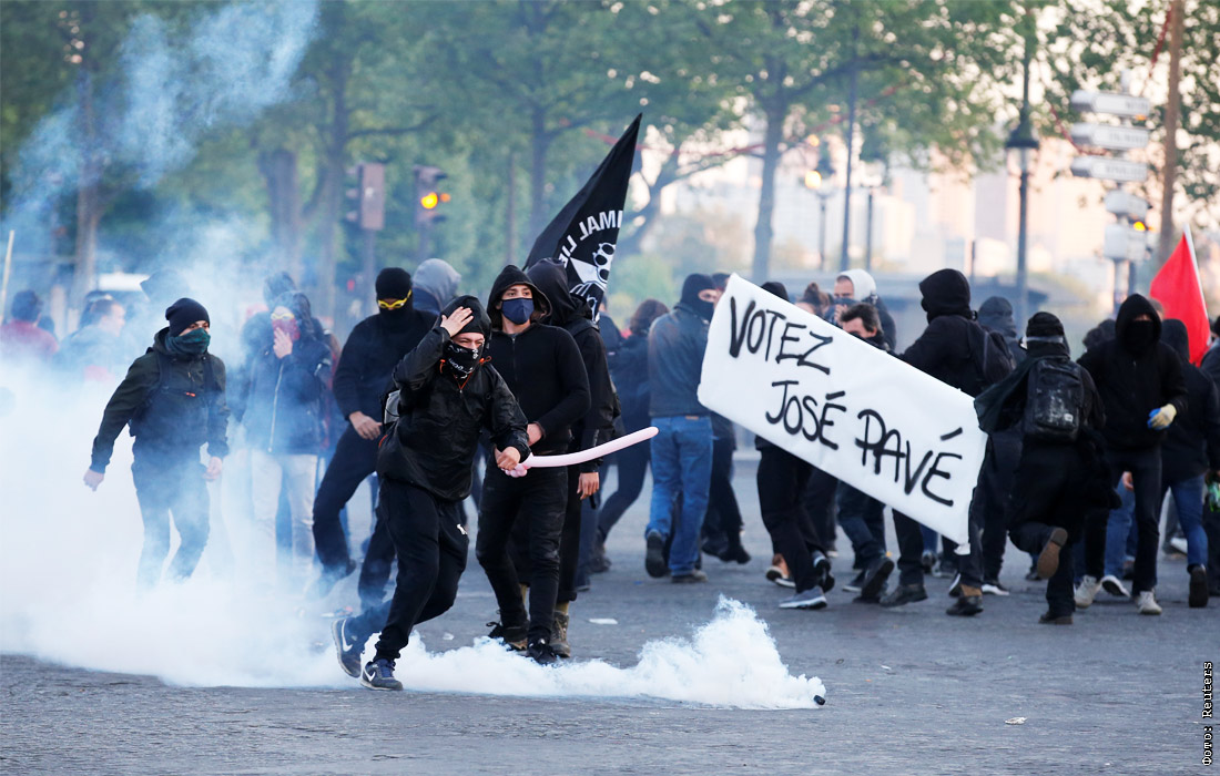 После первого тура выборов во Франции на улицы Парижа вышли несколько сотен молодых людей, недовольных результатами выборов. Они бросали в сотрудников полиции бутылки и петарды. Кроме того, протестующие разбили стекла нескольких автомобилей и витрины магазинов. В результате шесть полицейских получили травмы, также пострадали трое участников акций протеста. Правоохранительные органы задержали 29 человек.