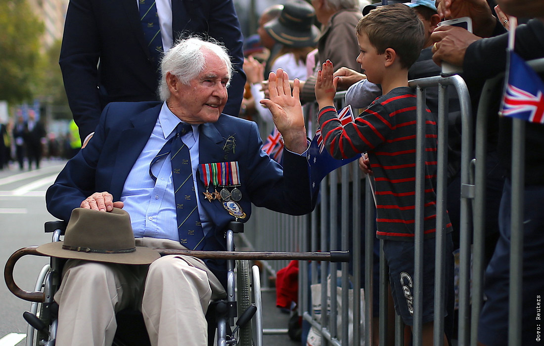 В Австралии отмечают день АНЗАК, названный в честь солдат Австралийского и Новозеландского армейского корпуса, принимавших участие в Первой мировой войне. В этот день проводятся военные парады, шествия ветеранов, а также мемориальные службы в память о погибших во время войн солдат.