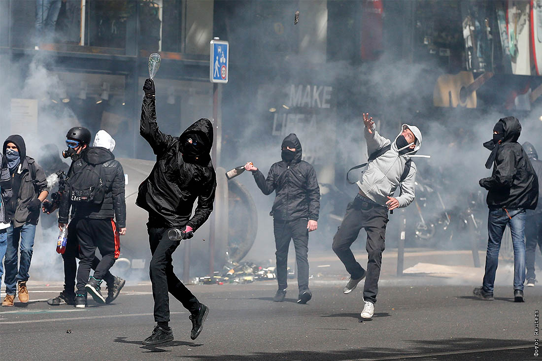 Французские школьники и студенты протестуют против результатов первого тура выборов президента страны. Демонстрантов не устраивает ни Эммануэль Макрон, ни Марин Ле Пен.