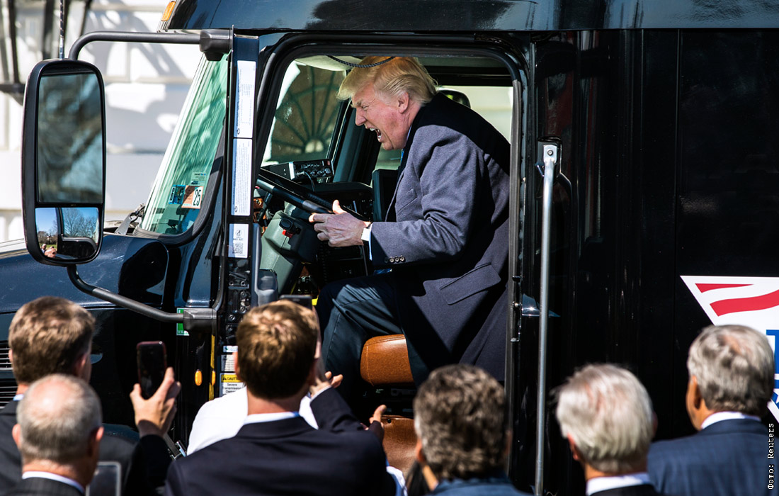23 марта во время встречи с членами Американской ассоциации грузоперевозок президент США Дональд Трамп сел за руль грузовика. Эмоциональная реакция Трампа стала поводом для шуток в социальных сетях.