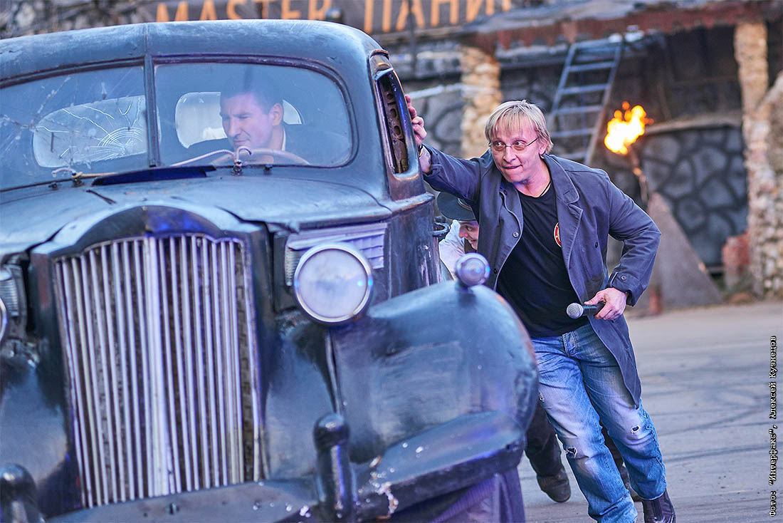 К сожалению, не вся техника смогла без перебоев пережить такое животрепещущее действо и один автомобиль пришлось выкатывать со сцены вручную