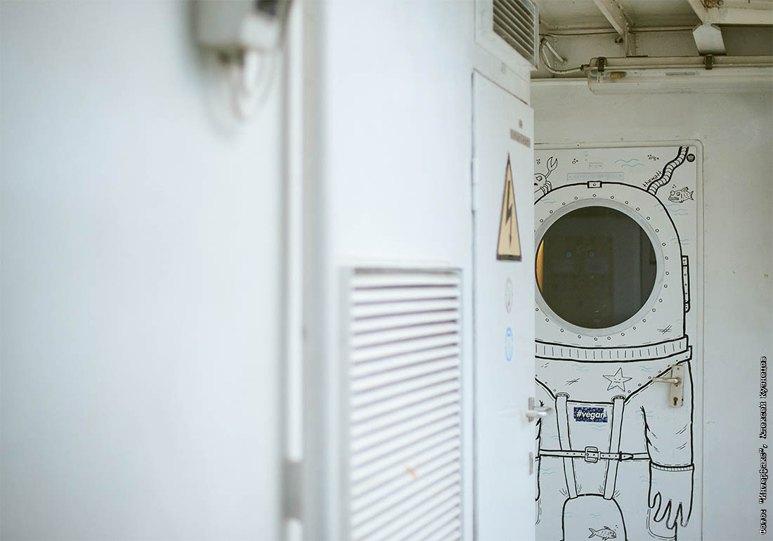 Внутри – покинутые каюты, сдававшиеся раньше в почасовом режиме и переделанные впоследствии под студии, шоурумы и мастерские. На палубах - артефакты от не стесняющихся самовыражаться посетителей и резидентов