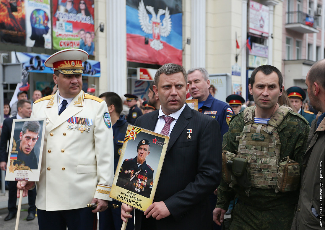 Глава Донецкой Народной Республики Александр Захарченко (в центре) во время акции памяти "Бессмертный полк"