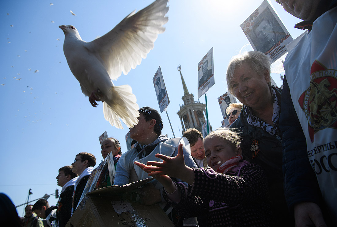 Екатеринбургский "Бессмертный полк". По предварительным подсчетам организаторов, с портретами участников Великой отечественной войны вышло более 70 тысяч жителей города