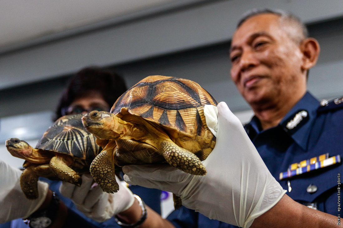 Таможенная служба Малайзии конфисковала 330 незаконно ввезенных из Мадагаскара экзотических черепах на сумму 1,2 млн ринггитов (276,721 долларов США)