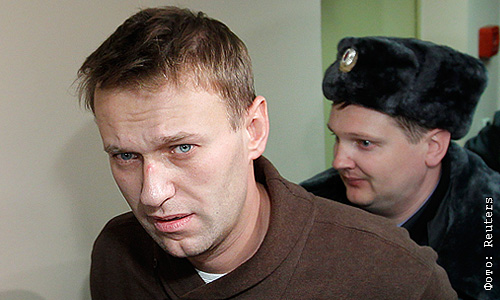 Блогер, создатель проекта "Роспил" адвокат Алексей Навальный перед заседанием в Тверском суде, куда он был доставлен после задержания во время акции оппозиционеров на Чистопрудном бульваре.