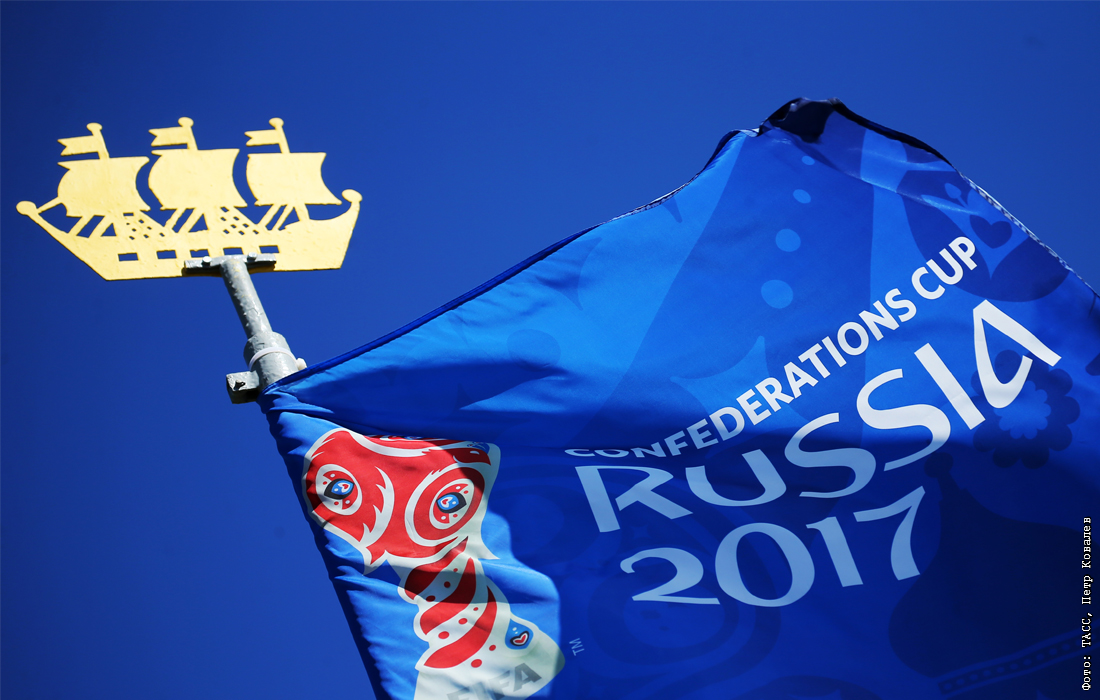 С 17 июня по 2 июля в России пройдет Кубок конфедераций по футболу. Матчи состоятся в Москве, Санкт-Петербурге, Сочи и Казани. В городах-организаторах футбольной символикой были украшены маршруты передвижения гостей и участников Кубка конфедераций, а также места проведения значимых спортивных мероприятий. Также в столице были установлены четыре двухметровые фигуры талисмана кубка и будущего чемпионата мира по футбола - волка Забиваки, которые будут украшать город до 4 июля.
