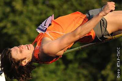 Российский спортсмен Иван Ухов, завоевавший первое место в прыжках в высоту на международном легкоатлетическом турнире "Moscow Open-2009"