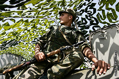 Военный во время оперативно-стратегических учений "Кавказ-2009" на полигоне "Серноводский"