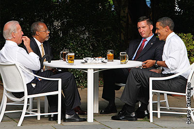 В Белый дом были приглашены афроамериканский гарвардский профессор Генри Луис Гейтс и белый полицейский Джим Кроули. Они выпили пива в саду за одним столом с Б.Обамой и вице-президентом Джо Байденом. Однако ни Гейтс, ни Дж.Кроули не попросили прощения за свои действия