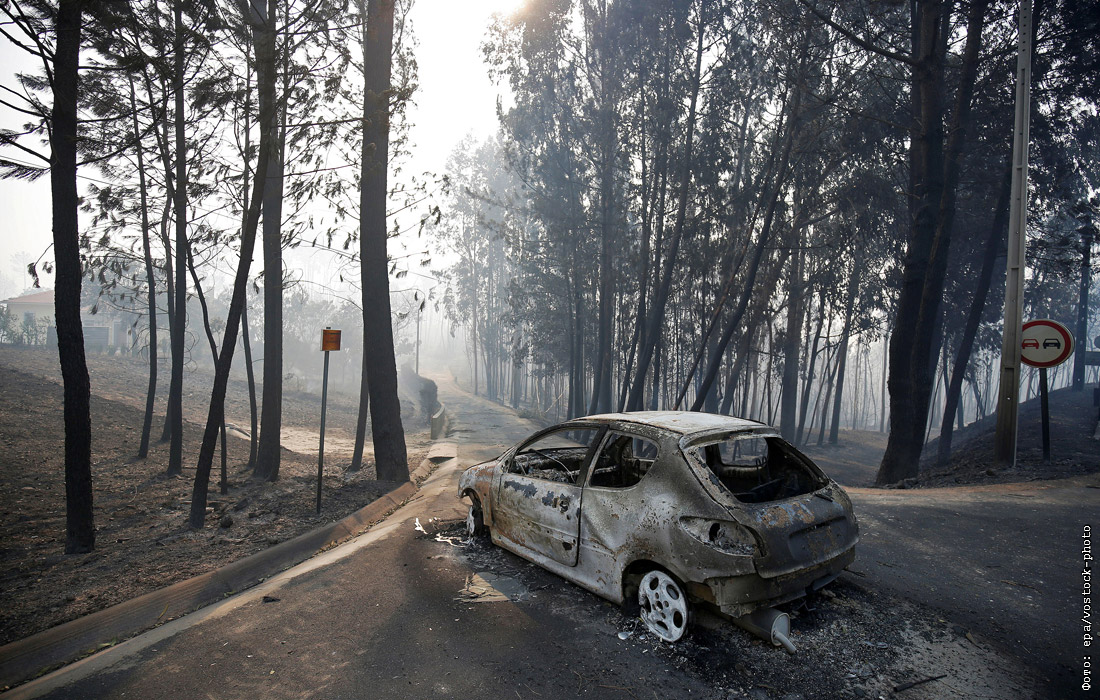 Сильные лесные пожары охватили округ Лейрия в центральной части Португалии