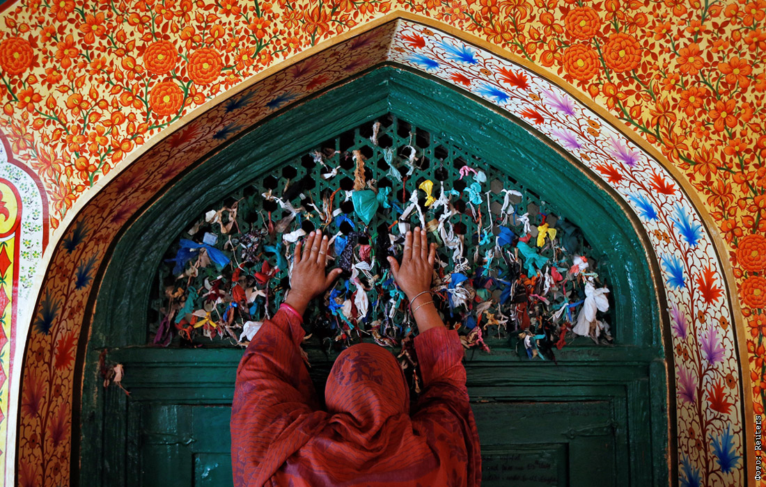 Мусульманская верующая возносит молитву в Шринагаре, Индия