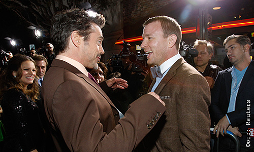 Актер Роберт Дауни-мл. и режиссер Гай Ричи на премьере фильма "Шерлок Холмс: Игра теней" в Лос-Анджелесе.