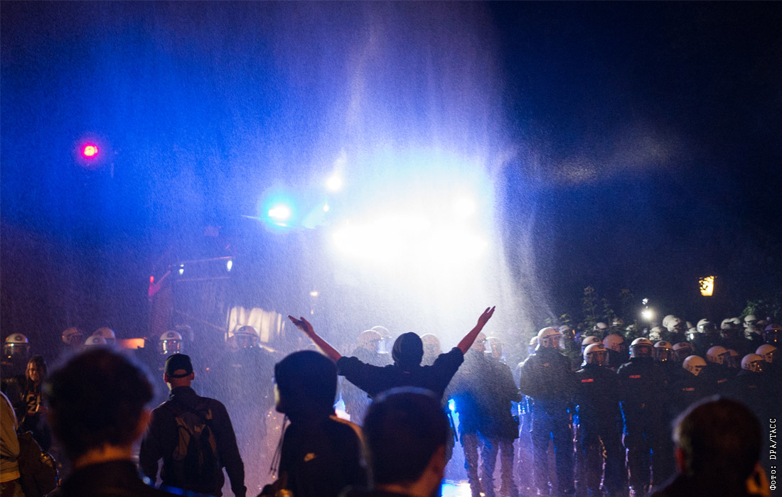 В ночь на среду в парке на западе Гамбурга немецкая полиция применила водометы и перцовый спрей, чтобы разогнать толпу из сотен человек, которые пытались блокировать дороги