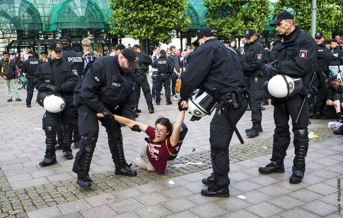 В воскресенье, 2 июля, сотни людей вышли на демонстрацию против политики G20, прежде всего, в сфере защиты климата и торговли. В период саммита город будут охранять около 20 тыс. полицейских.