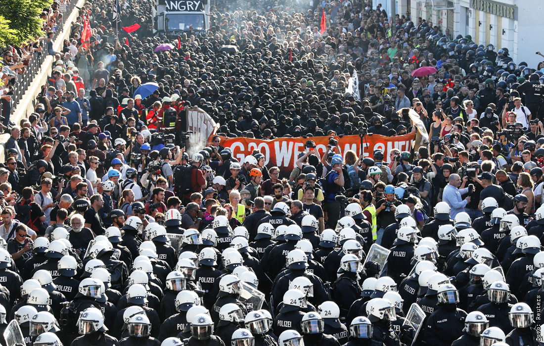 Акция протеста антиглобалистов в Гамбурге