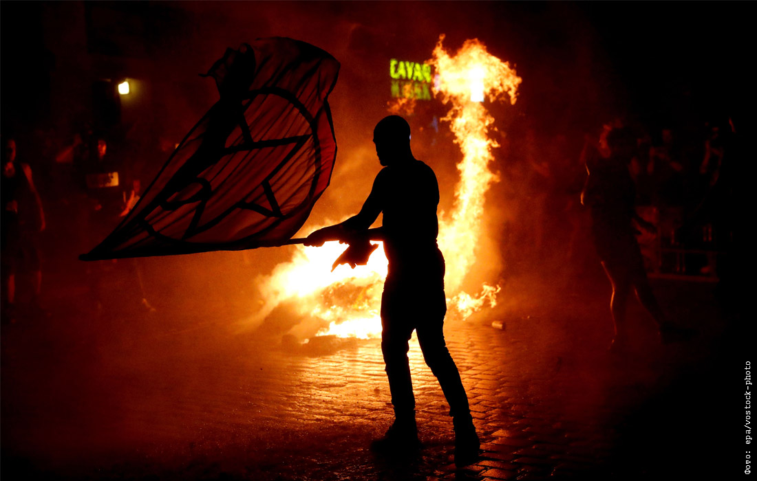 Столкновения протестующих с немецкими полицейскими продолжались всю ночь. Радикальные активисты забрасывали стражей порядка файерами, поджигали мусорные баки и автомобили.