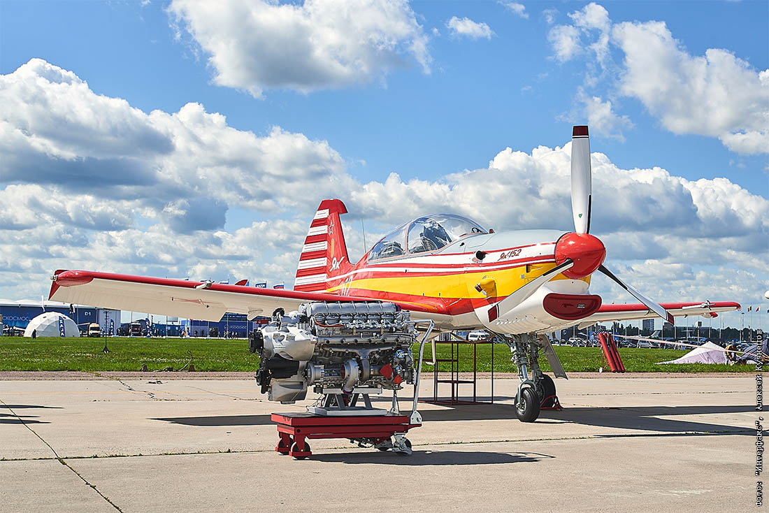 Учебно-тренировочный самолет Як-152 и его дизельный мотор RED-A03T, который выдает 500 "лошадей" и позволяет разгонять самолет до 500 км/ч