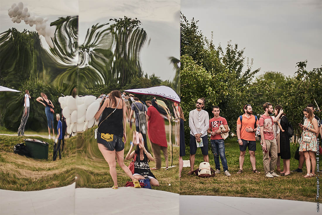 К самым интересным и захватывающим аттракционам (например к этой воздушной трубе) выстроились изнуряющие очереди