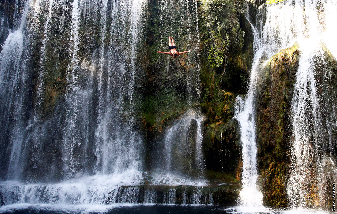 Участник международных соревнований по прыжкам с водопада в Яйце. Босния и Герцеговина.