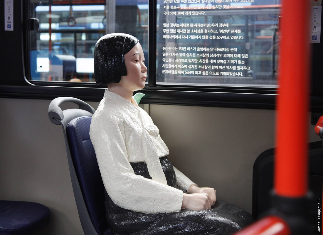 В некоторых сеульских автобусах установили статуи, символизирующие женщин, принуждаемых японскими военными к проституции во время Второй мировой войны. В рамках акции памяти они будут курсировать по корейской столице до 30 сентября.