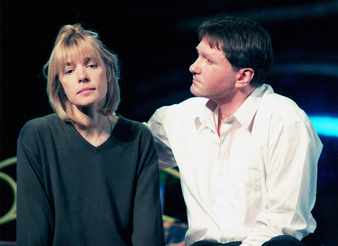 С Игорем Бочкиным во время спектакля-дуэта "Русская рулетка" в театре имени Маяковского. 1999 год.