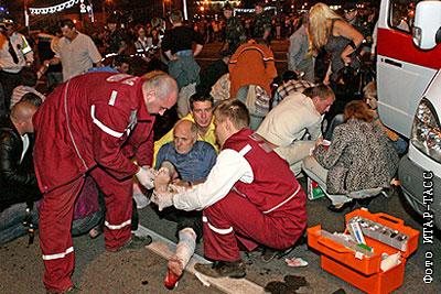 Оказание помощи пострадавшим в результате взрыва во время празднования Дня Независимости