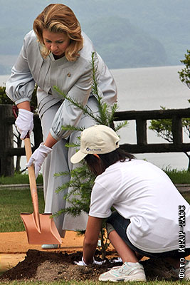 Супруга президента России Светлана Медведева во время церемонии посадки деревьев в мемориальном парке у озера Тоя на острове Хоккайдо