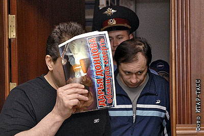 Участники "Орехово-Медведковской" группировки, обвиняемые в убийстве главы Фонда социальной защиты спортсменов Отари Квантришвили, Олег Пылев и Сергей Елизаров (слева направо) перед началом предварительного слушания в Мосгорсуде