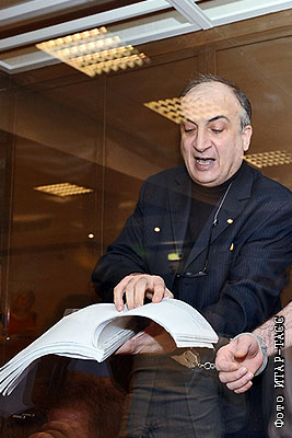 Бывший сенатор Левон Чахмахчан, обвиняемый в попытке хищения 1,5 миллионов долларов у руководства авиакомпании "Трансаэро", в зале заседаний Мосгорсуда