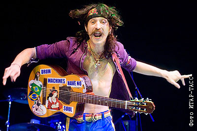 Лидер группы Gogol Bordello Евгений Гудзь во время выступления в клубе "Б1 Maximum"