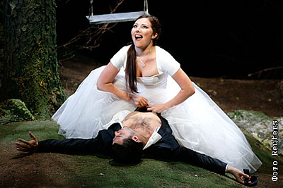 Артисты Алекс Эспосито и Екатерина Сюрина в опере Моцарта "Дон Жуан" на театрально-музыкальном форуме в Зальцбурге