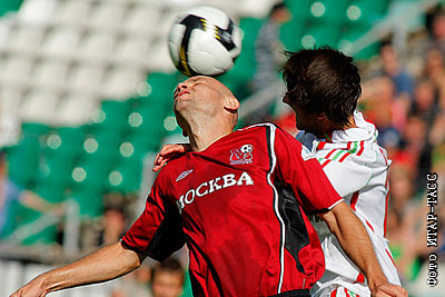 Игроки "Москвы" Мариуш Йоп и "Локомотива" Ариэль Перейра (слева направо) в матче чемпионата России по футболу: "Москва" (Москва) - "Локомотив" (Москва) - 0:3