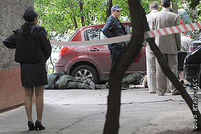 У отделения Сбербанка на Ленинском проспекте, где произошло вооруженное нападение на инкассаторов, в результате которого два человека убиты и один ранен