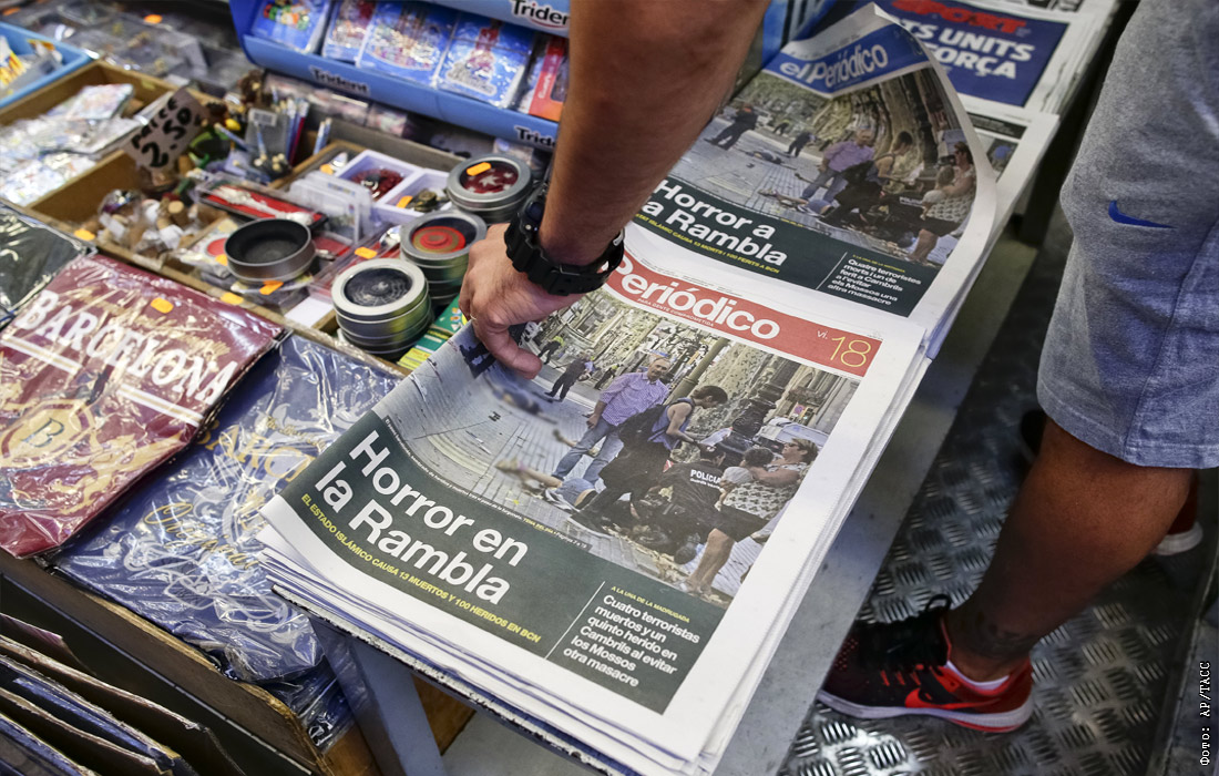 Первые полосы утренних газет Барселоны, посвященные страшной трагедии