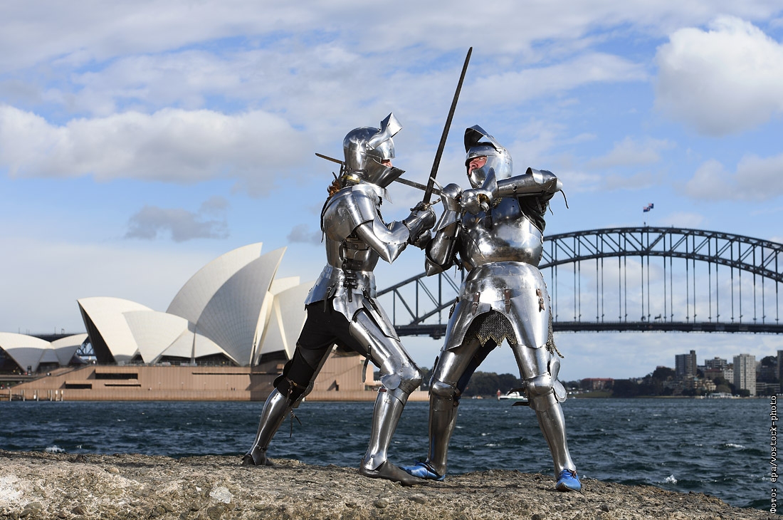Участники будущего Чемпионата мира по Историческому средневековому бою в Сиднее. Австралия.