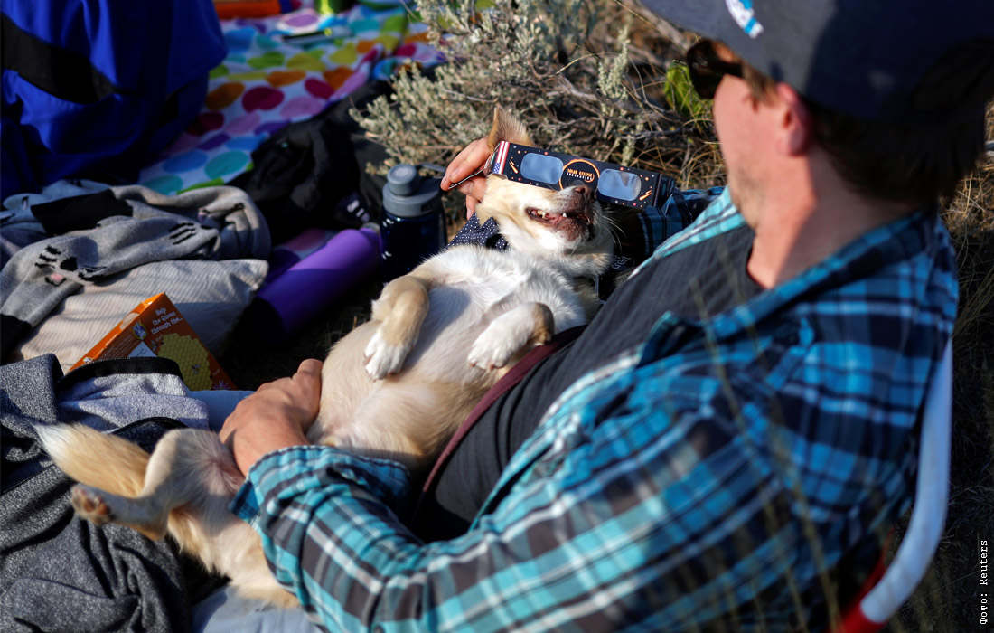 Наблюдая за солнечным затмением американцы не забывали о своих питомцах
