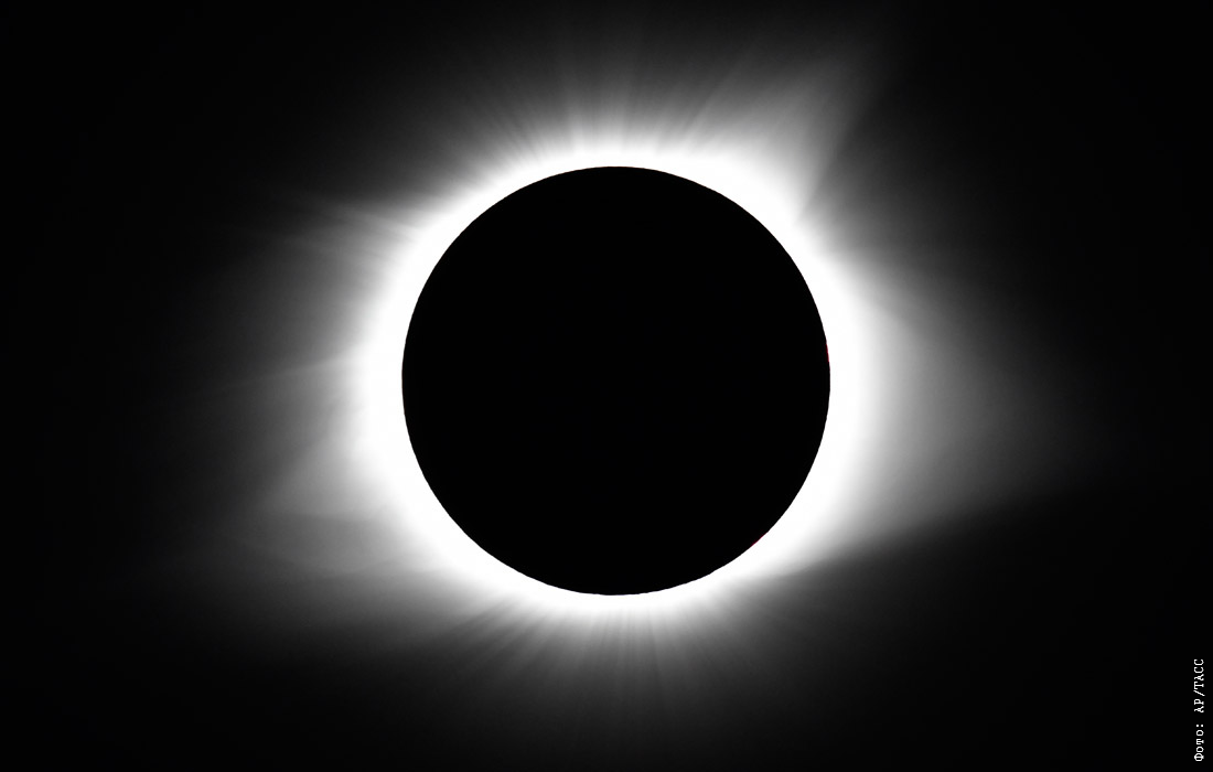Жители США в понедельник смогли наблюдать полное солнечное затмение, которое затронуло все штаты от одного до другого побережья страны впервые за 99 лет. Оно началось в 19:47 мск на восходе Солнца в Тихом океане к северу от Гавайских островов, а закончилось около 23:00 мск в Атлантическом океане. Длительность максимальной фазы составила 2 минуты 40 секунд.